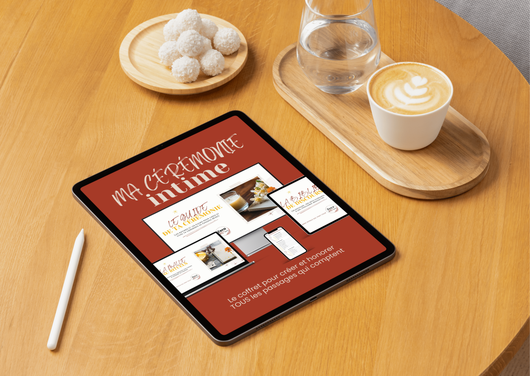 C’est exactement pour toi que j’ai créé Ma cérémonie intime. Un coffret dématérialisé pour que tu puisses de chez toi et en toute autonomie :